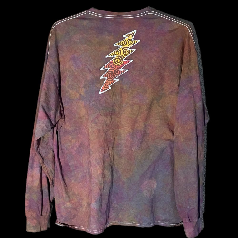 I wanted to create a simple long sleeve design that still packed a punch. It features the Grateful Dead palindrome on the front framed by 5 ovals of 3 different colors.
