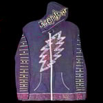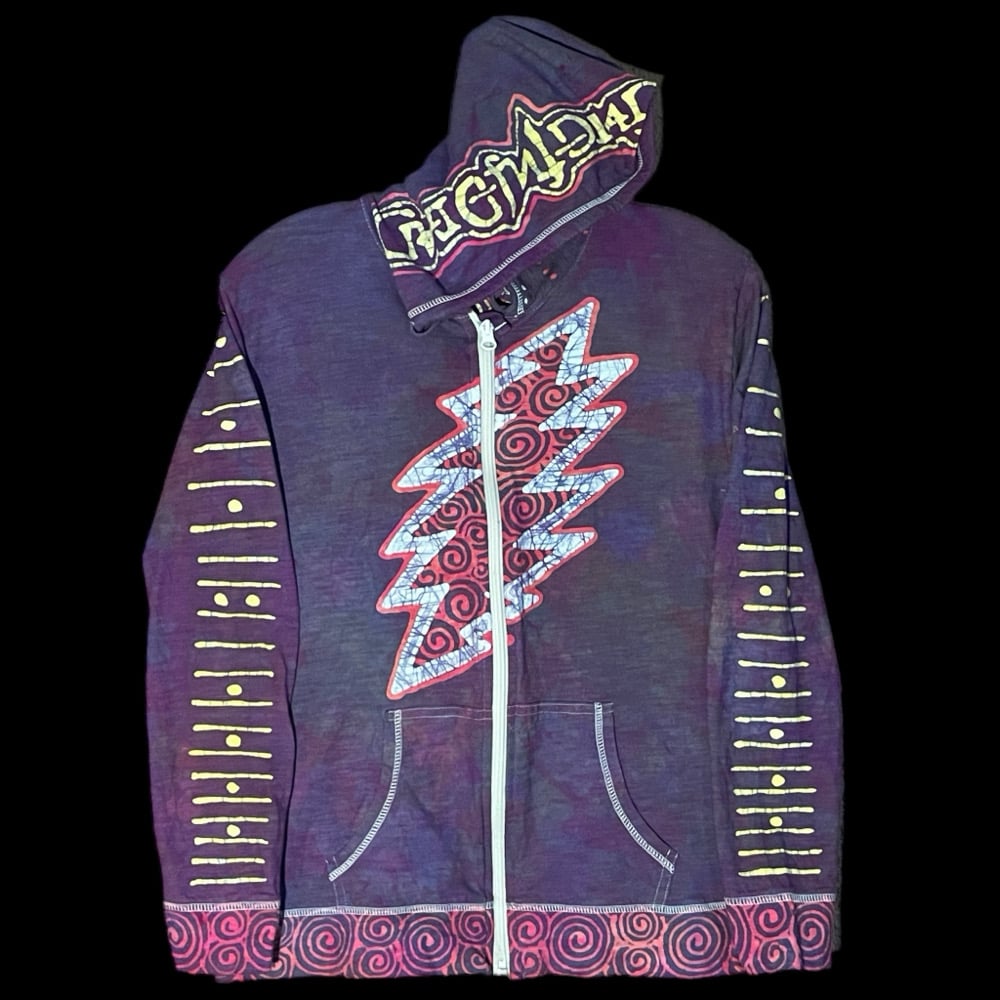 The hood has multicolored shooting stars on one side and the Grateful Dead palindrome framed in fuchsia on the other. (You can't get that kind of coverage with a screen print!)