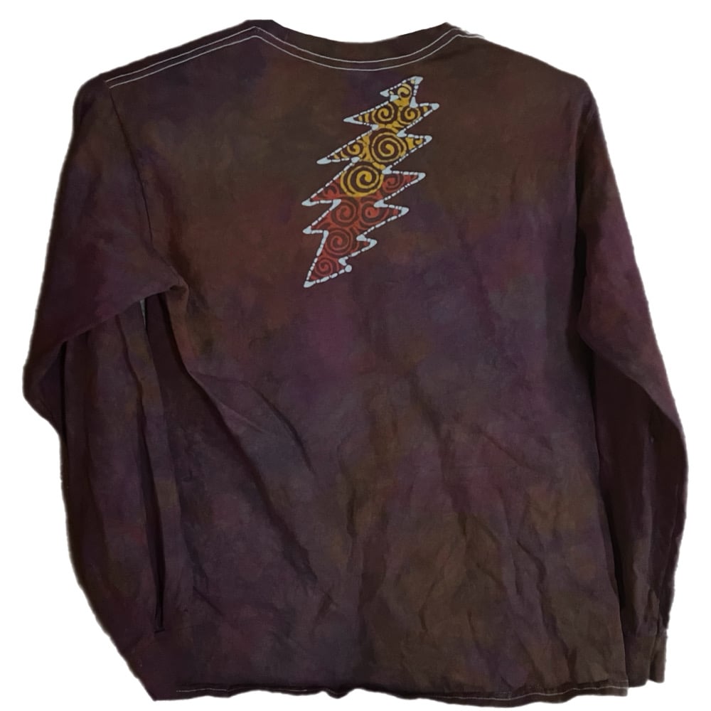 I wanted to create a simple long sleeve design that still packed a punch. It features the Grateful Dead palindrome on the front framed by 5 ovals of 3 different colors.