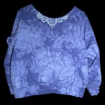 This XL sweatshirt features a stealie at the front neckline, a string of roses on the sleeves and along the the back neckline. Sweatshirt is a deep purple